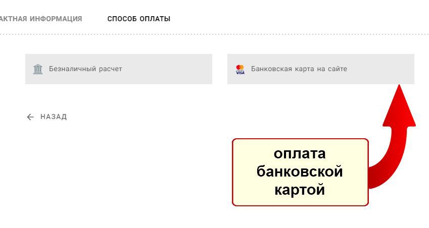 7. Выбрав «Банковская карта на сайте», Вы перейдёте на страницу оплаты банковской картой, где вы должны будете ввести данные банковской карты и нажать кнопку "заплатить":