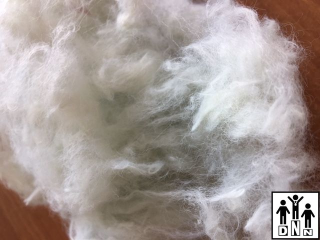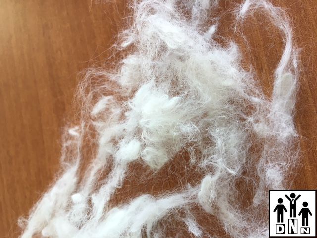 Понятие «длина волокна» или «резка» в нашем случае неприменимо, поскольку это волокно получено в результате разволокнения кромки материала, произведённого по технологии спанбонд (т.е из фильерной мононити).