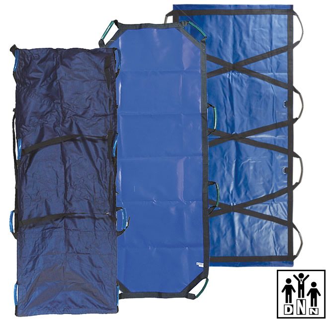 Бескаркасные носилки типа "Плащ" используются для транспортировки пациента при работе в тесном помещении и ограниченном пространстве - там, где по габаритам не входят обычные "жесткие" носилки.