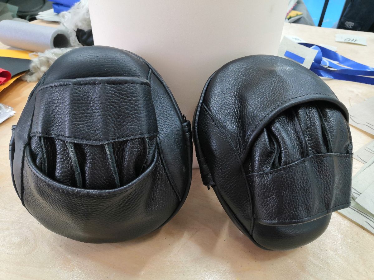 Изогнутые (вогнутые) боксерские лапы. В первую очередь применяются для отработки скорости и точности ударов. Более удобны в удержании для тренера, по сравнению с прямыми лапами. В отличии от прямых лап, изогнутые лапы, более однородны по своим размерам и отличаются толщиной наполнителя и удобством применения тренером.