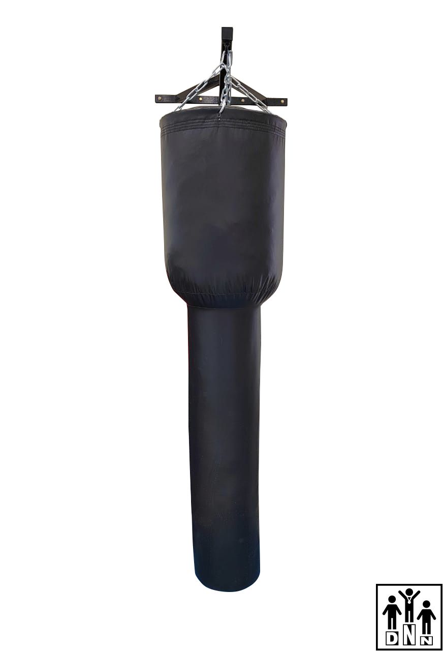 Нижний диаметр 20смВ технологии производства решены основные проблемы, характерные для боксерских мешков: усадка материала, боковые швы и деформация снаряда. В процессе изготовления наполнитель подвергается сжатию, что уменьшает вероятность его усадки и перемещения в нижнюю часть мешка. Практически неощутимые боковые швы и усиленный шов в местах подвеса. Стальной обруч и дублирующий внутренний мешок удерживают снаряд от деформации и растяжения.