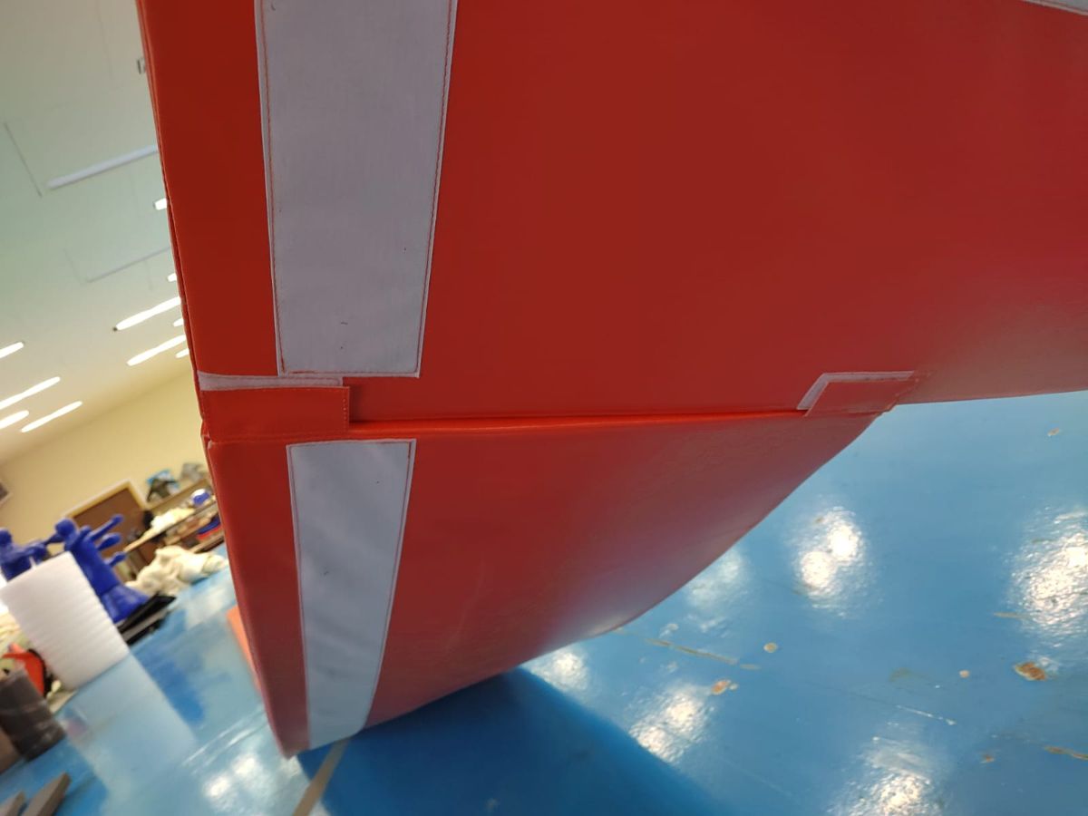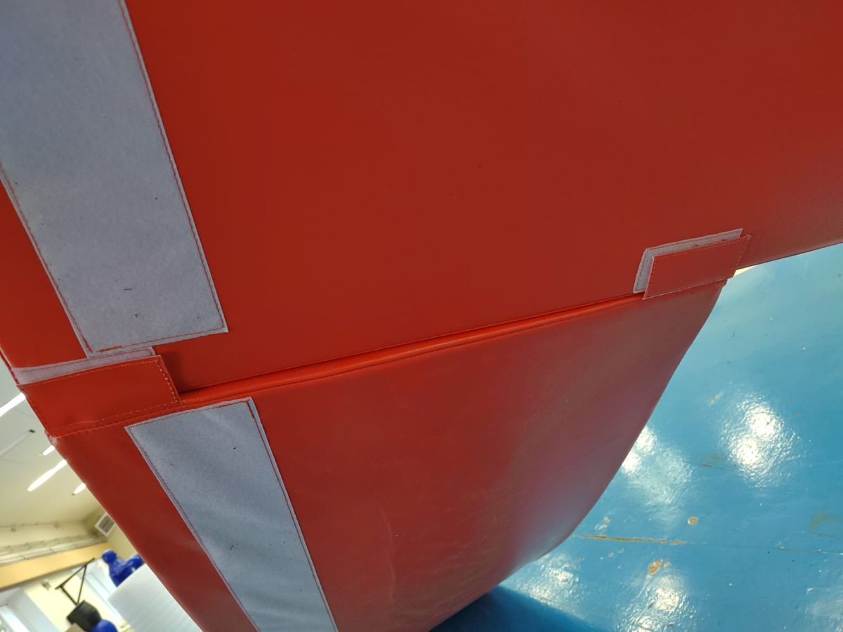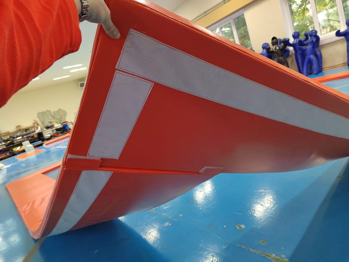 Маты надёжно крепятся к раме батута и фиксируются на ней; также они защищены от скольжения по полу благодаря специальному покрытию тентовой ткани.