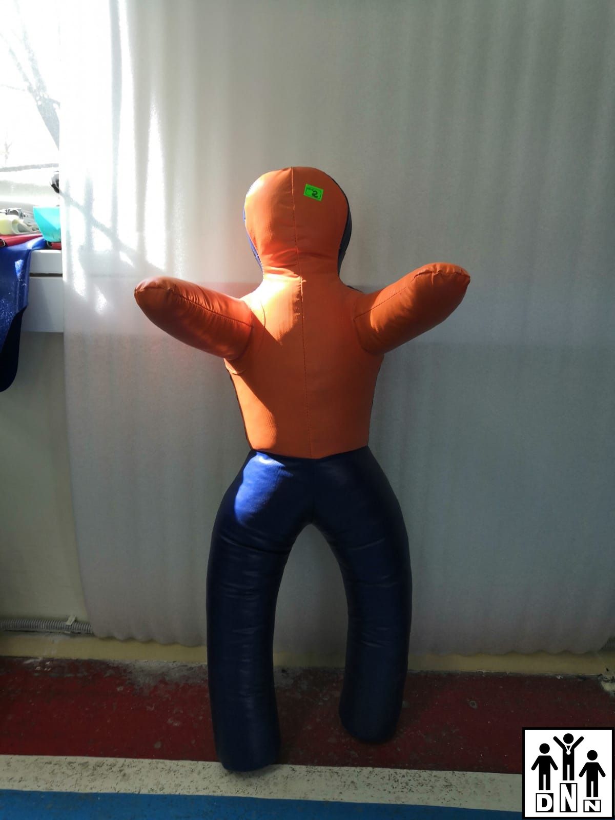 Высота 100 см ширина 40см, набит резиновой крошкой с ветошью.