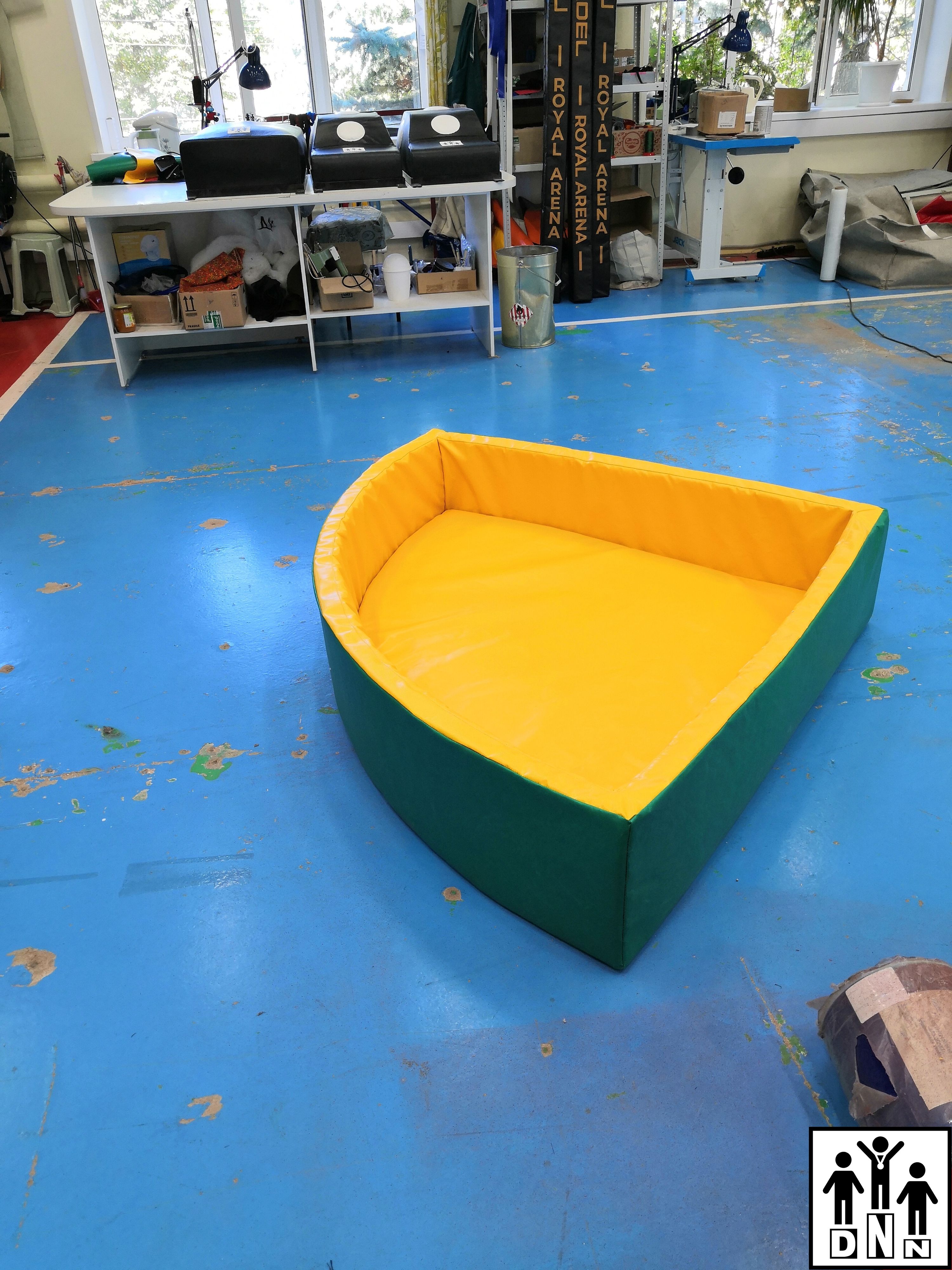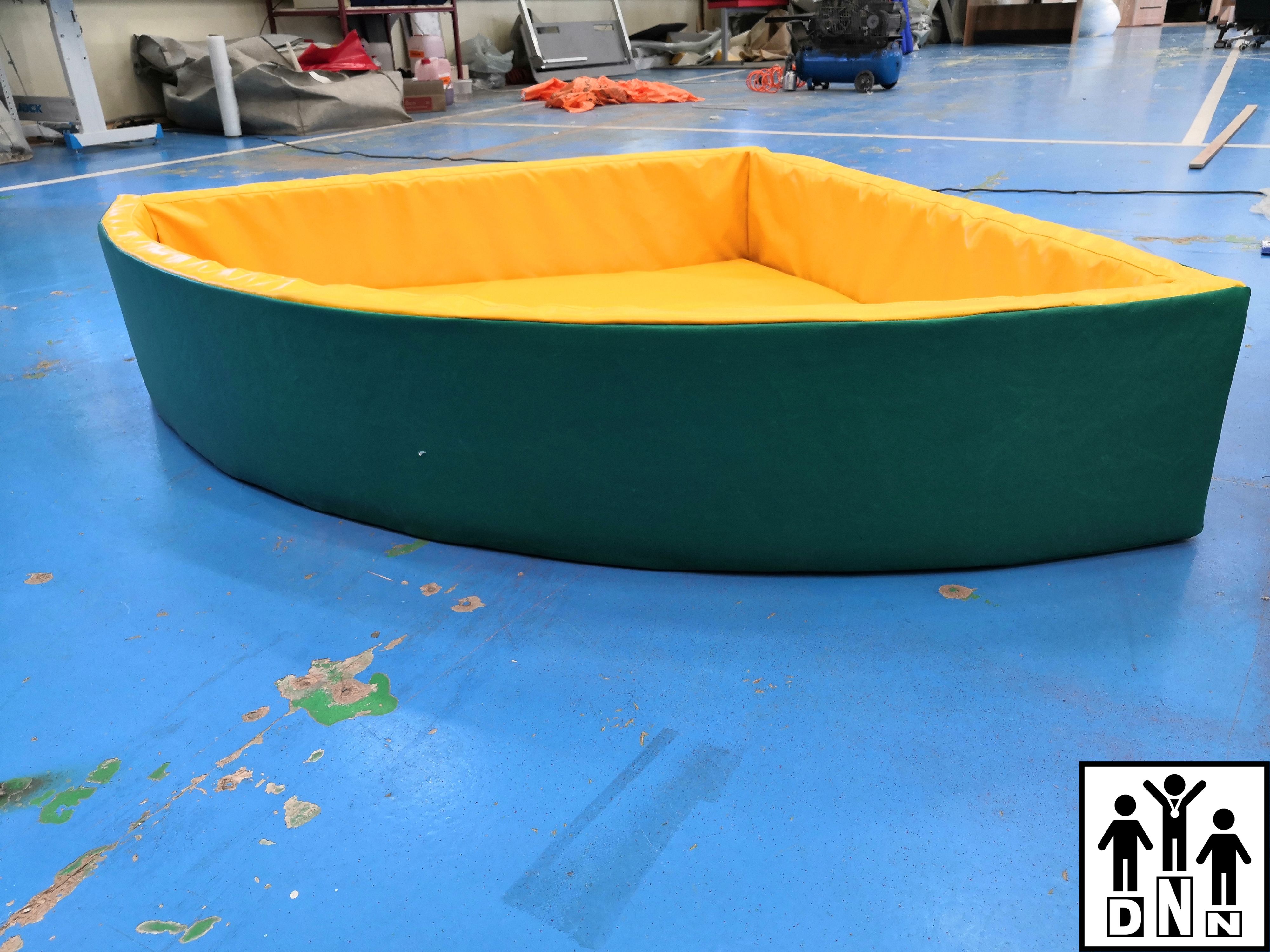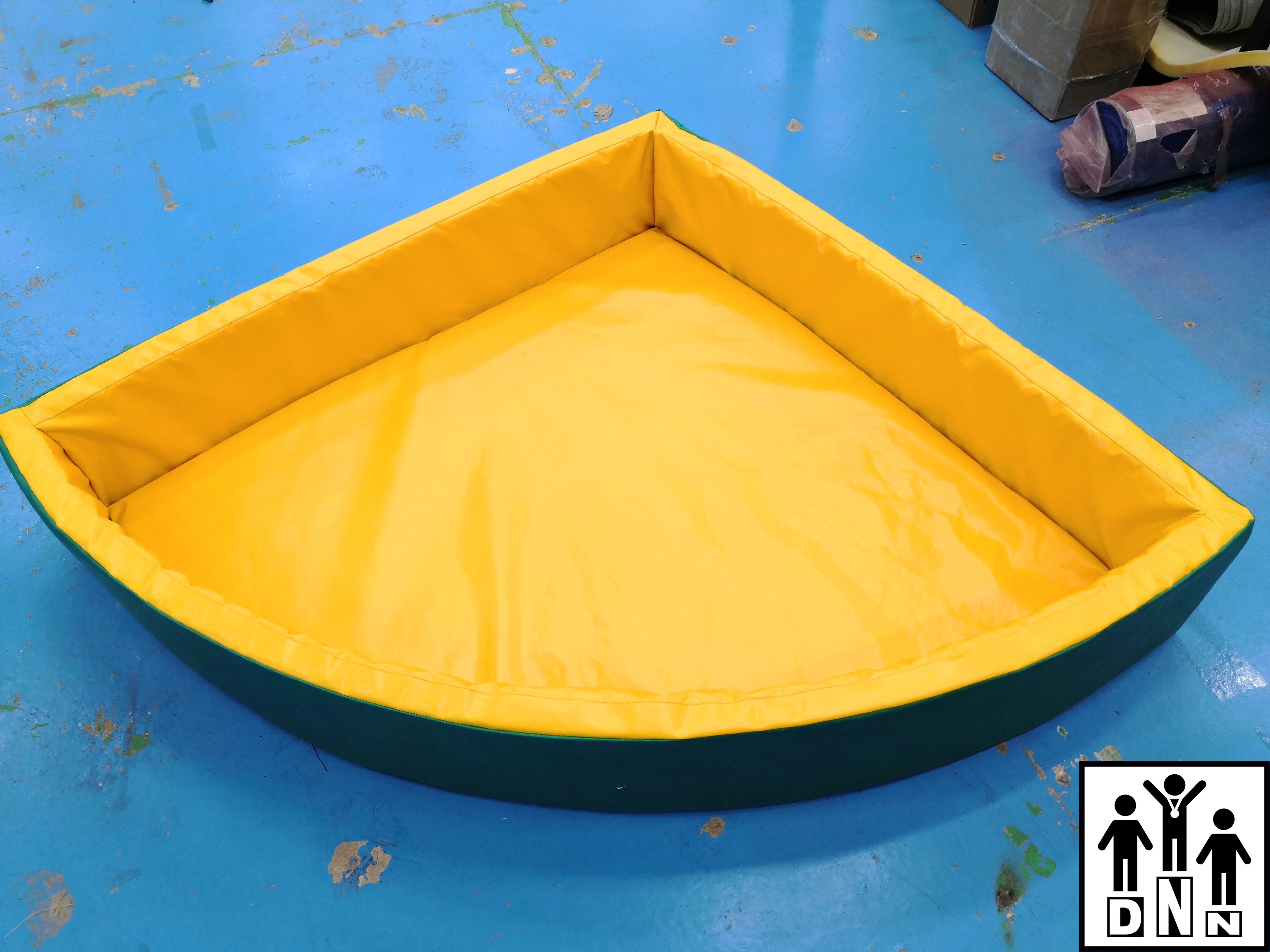 Детский сухой бассейн угловой R150xH36 зеленый без аппликаций. Рекомендуемое количество шаров - 700 шт. Цветовая гамма может быть выполнена по желанию заказчика.