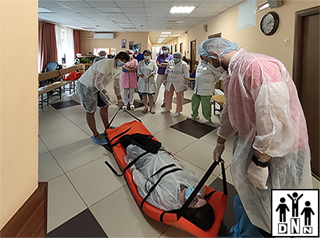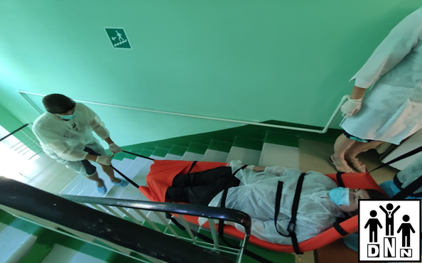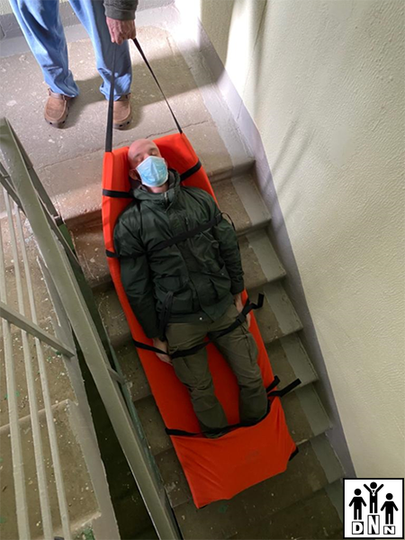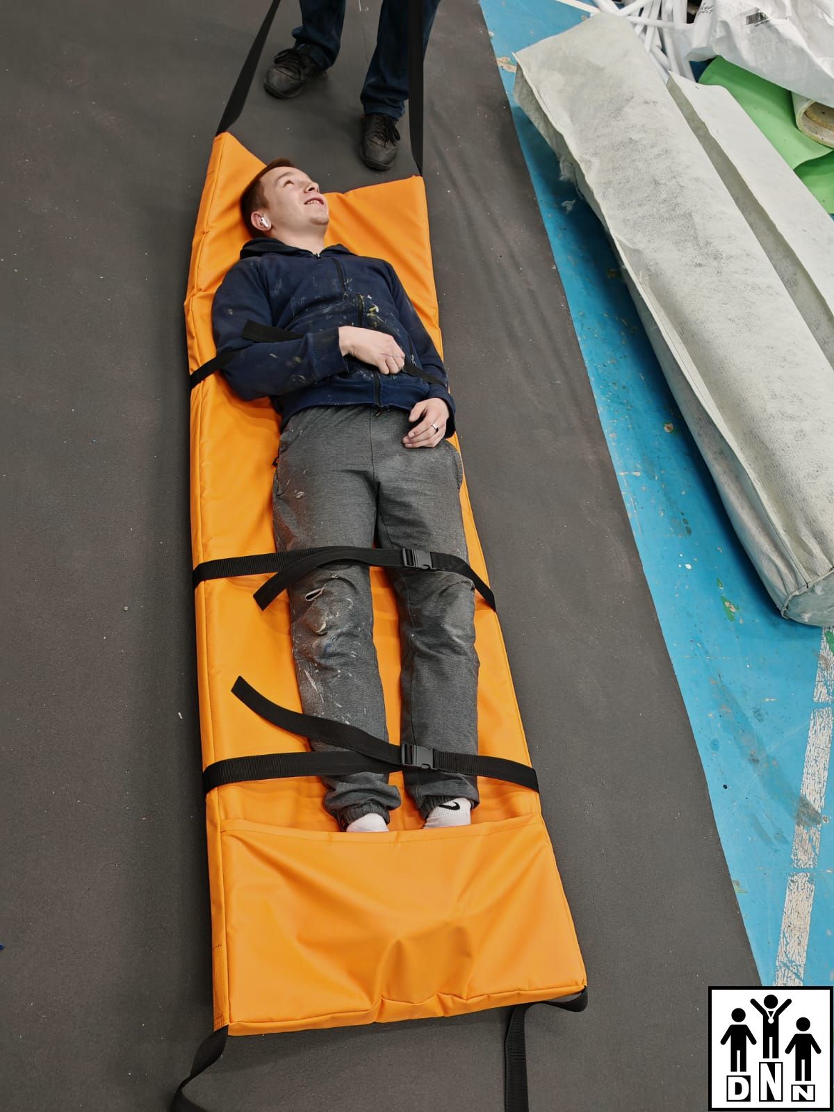 В экстренной ситуации мат DNN просто и быстро извлекается из чехла и раскладывается перед постелью пациента. Пациент заворачивается в простыню, переносится на мат DNN, фиксируется ремням и теперь можно начинать его эвакуацию.