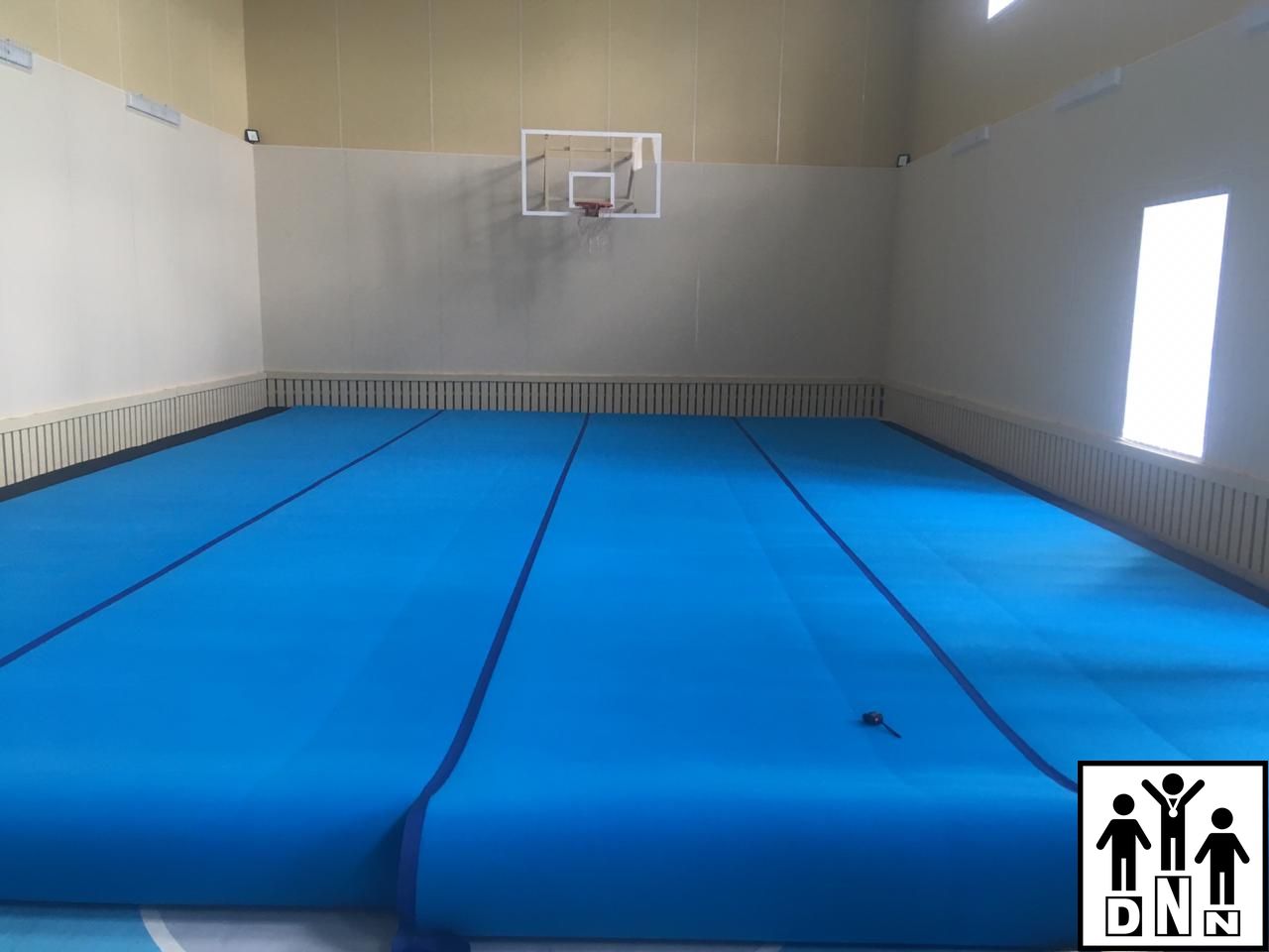Дорожки поставляются длиной 14,0м. После укладки дорожек на пол спортивной площадки, их обрезают до стандартной длины 14,0м и стыкуют между собой лентой "Velcro", накладываемой поверх стыка. Затем наносится контрастной лентой "Velcro" разметка в виде квадрата, согласно правилам.