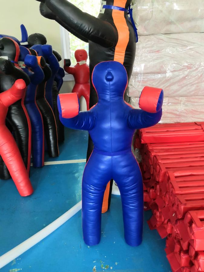 Манекены с висячими на стропах руками изготавливаются для самбистов для тренировки приемов с участием рук соперника и заходов на болевые приемы,манекены с неподвижными руками больше подходят для вольной борьбы,греко римской. Под заказ возможно изготовление нестандартных манекенов (одноногий без рук, "вертушка" и пр.). Особенностью манекенов является набивка: преобладание в наполнителе синтепоновой крошки предохраняет его от слеживания, усадки и делает снаряд упругим; руки у классического и двуногого манекена внутри не соединены с корпусом, они имеют более мягкую набивку для придания большей реалистичности и для снижения риска повреждения манекена при падении; набивка производится преимущественно через ноги. Ярко выраженный Силуэт, максимально приближенный к человеческому, также является особенностью наших манекенов. Долговечность снаряда обеспечивается благодаря высококачественной коже, которая изнутри армируется синтетической тканью, и практически неощутимым внутренним швам. При подборе манекена следует ориентироваться на то, что снаряд должен быть на 10-15 см ниже борца (имитация стойки) и в два раза легче (так как манекен не сгибается в поясе подобно человеку, то при амплитудных бросках вес манекена ощущается как удвоенный из-за возникающего момента силы). Каждый манекен проходит предпродажное тестирование.