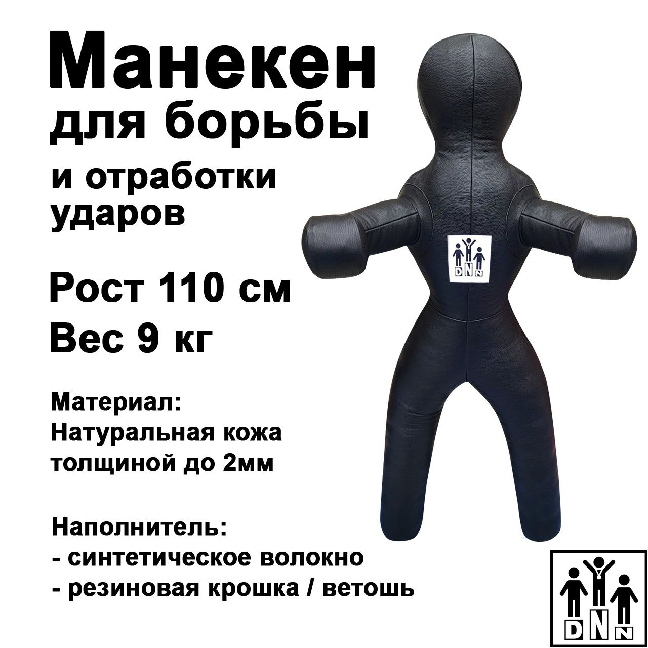 Манекен двуногий для борьбы. Манекены практикуются в различных видах борьбы и самбо, и незаменимы для бросков, отработки проходов в ноги, низких стоек и приемов с участием ног. Манекены производятся только из высокопрочной натуральной кожи. Кожа натуральная, лицевая, гидрофобная с дополнительной разбивкой. Цвет коричневый, чёрный. Используется кожа типа флотер, толщина 1,4- 2,0 мм