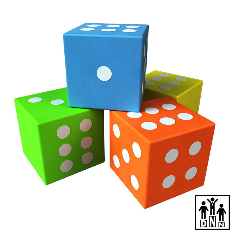 Мягкий модуль Кости - четыре цветных пуфа имитирующие игровые кости. Помогает научиться ребенку счету, а также может быть использован как кубики для строительства башен. Габаритные размеры 300 х 300 мм. Вес с упаковкой 8 кг.