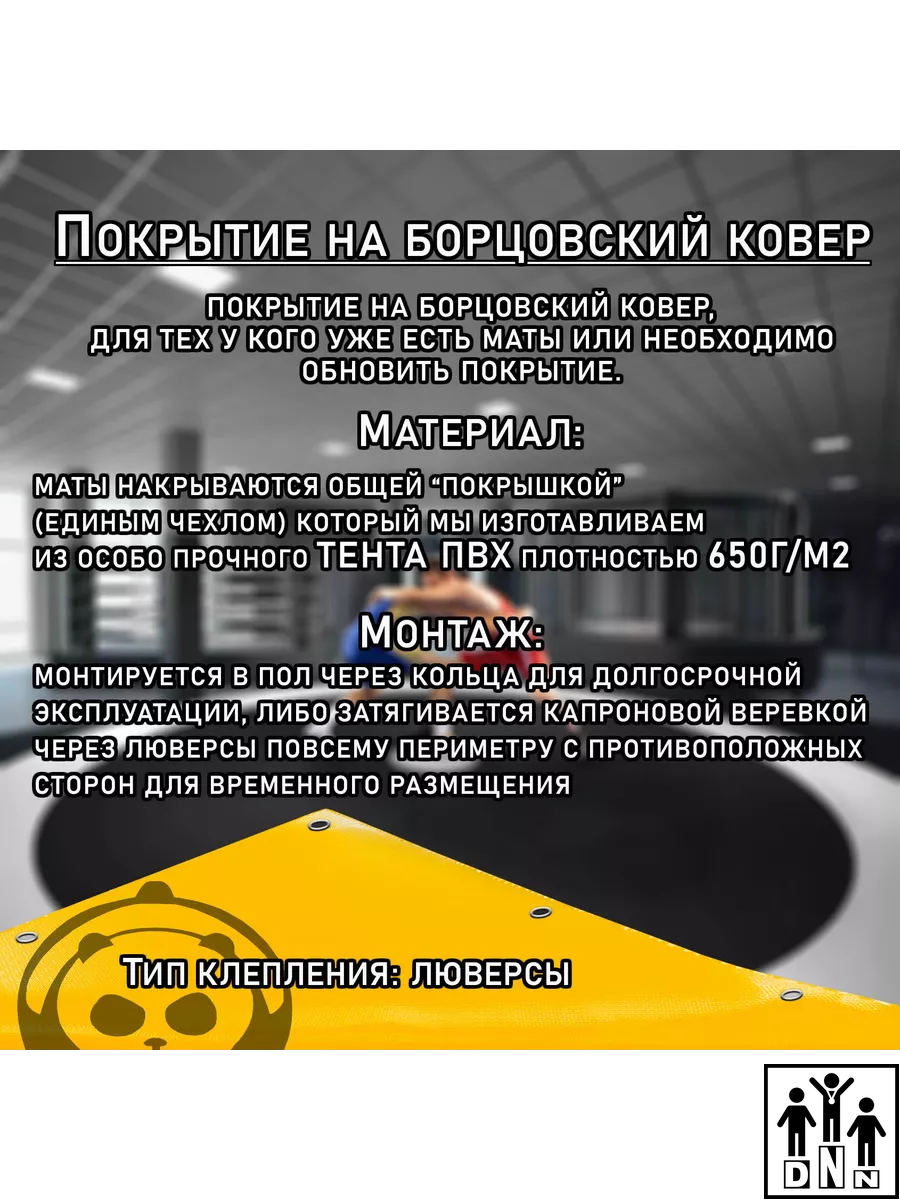 Покрытие для борцовских ковров из импортного покрытия ПВХ (Корея) плотностью 650 гр/м2. Ткань ПВХ — идеальное современное покрытие, которое отвечает всем нормативам европейских стандартов, требованиям к пожаробезопасности и экологичности. Во-первых, она достаточно проста в уходе и имеет отличные показатели прочности. Во-вторых, ткань имеет правильное соотношение мягкости и упора, равномерно ранжирует силовую динамическую нагрузку. И наконец, соответствует максимальным параметрам прочности и устойчивости к изгибам, имеет продолжительный эксплуатационный период. Для наполнения борцовских ковров мы рекомендуем маты из ППЭ размером 1х2 метра толщиной 40 мм. Размер чехла: 200см * 200см. Маты в комплектацию не входят!!!