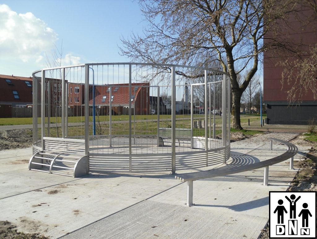 Размер площадки: Ф6.0м, высота 1,8м., ворота: ширина 0,8м, высота 0,4м.