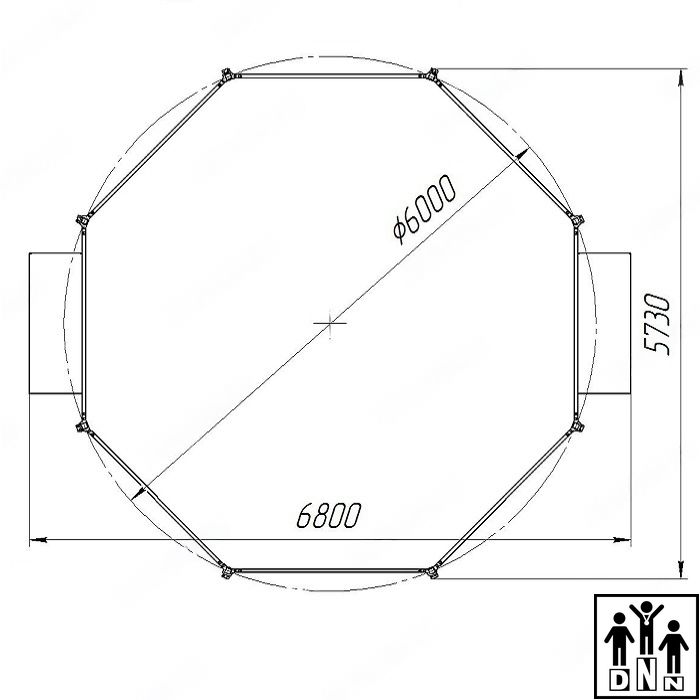 ДШВ,мм 6800х5730х1820 высота ограждения 1800мм, ворота 1500х600х600мм. Вес комплекса - 550 кг