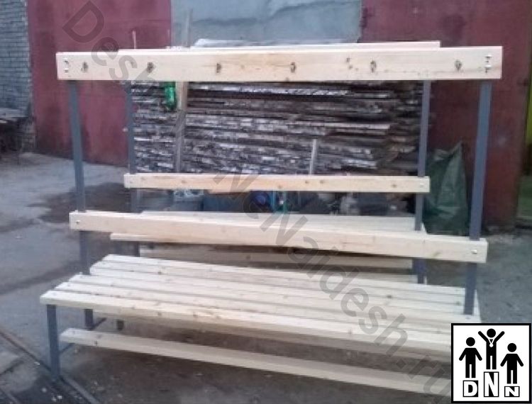 Удобная,оптимальная скамейка для раздевалок. Устанавливается в школах, спортивных комплексах, фитнес центрах. Изготавливается из стального профиля сечением 40х20х1,5мм с последующей покраской . Сиденье из деревянных реек толщиной от 35 мм покрытых экологически чистым, влагостойким лаком. По 4 крюча с каждой стороны. Основные размеры скамейки: Ширина - 64 см; Высота сиденья - 45 см; Длина 100 см. Общая высота 160 см